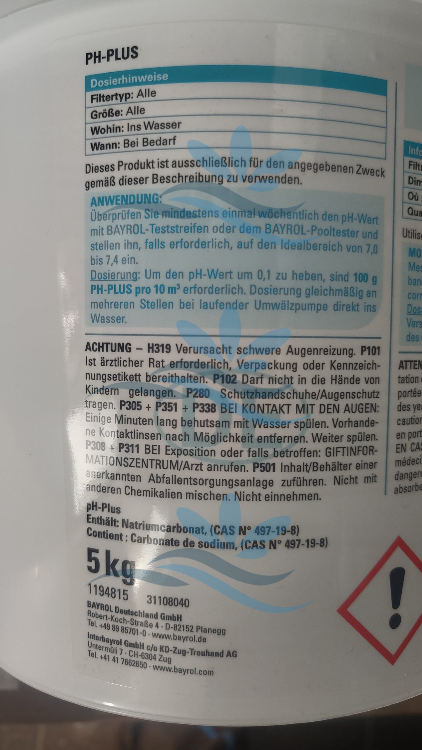 pH-Plus en granulés permet d’augmenter la valeur de pH de l’eau de piscine et doit être utilisé si le pH est inférieur à 7.0. Grâce au doseur inclus dans le seau, le dosage des granulés est très simple et la valeur de pH peut être ajustée très précisément.